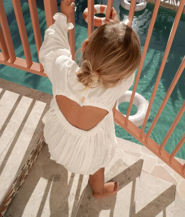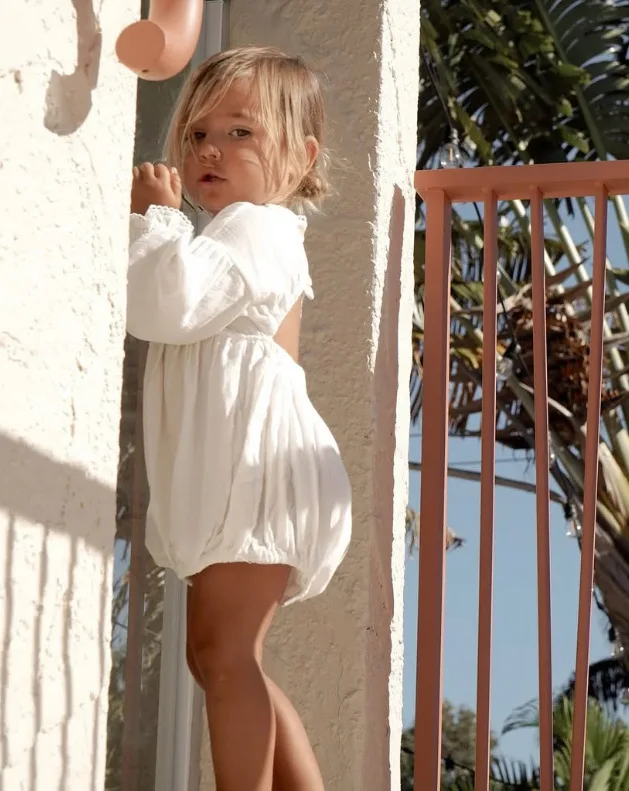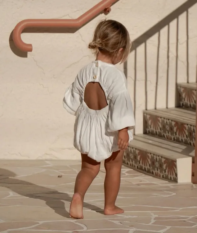 2025 Nordic Baby Spring and Autumn Cotton and Linen Hollow Out Backless V-neck Lace Jumpsuit Baby Clothes