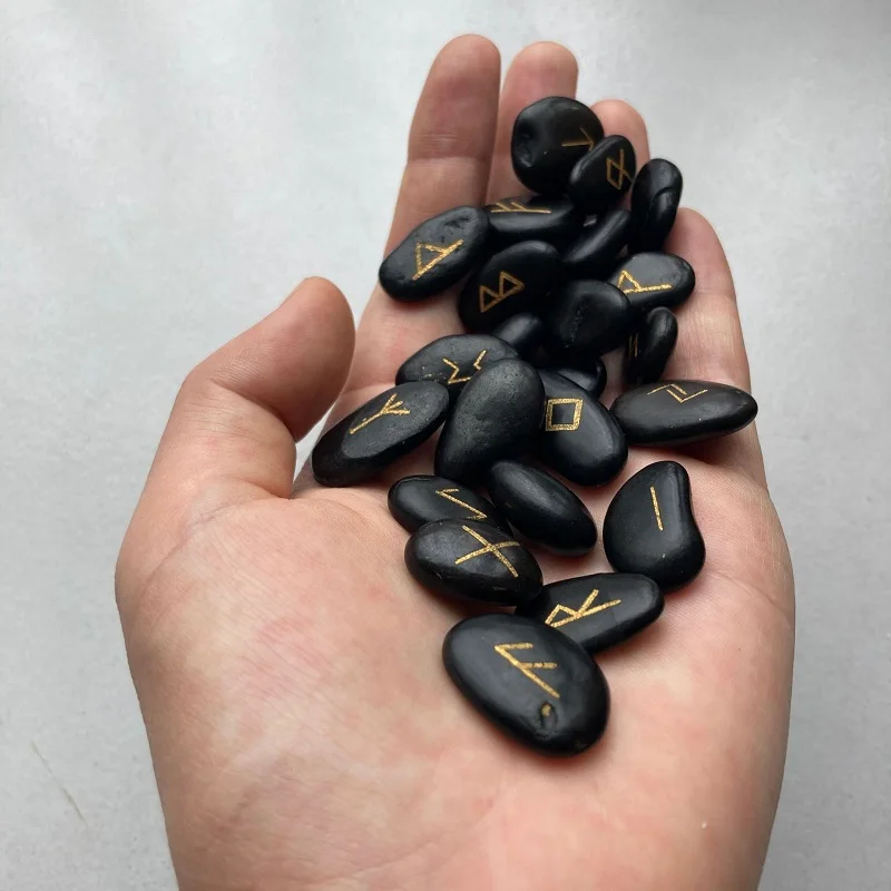 25pcs/set Engraved Riverstones Viking Rune Stones Set Carved Black Lettering runes Game Divination Astrology Altar Amulet Sign