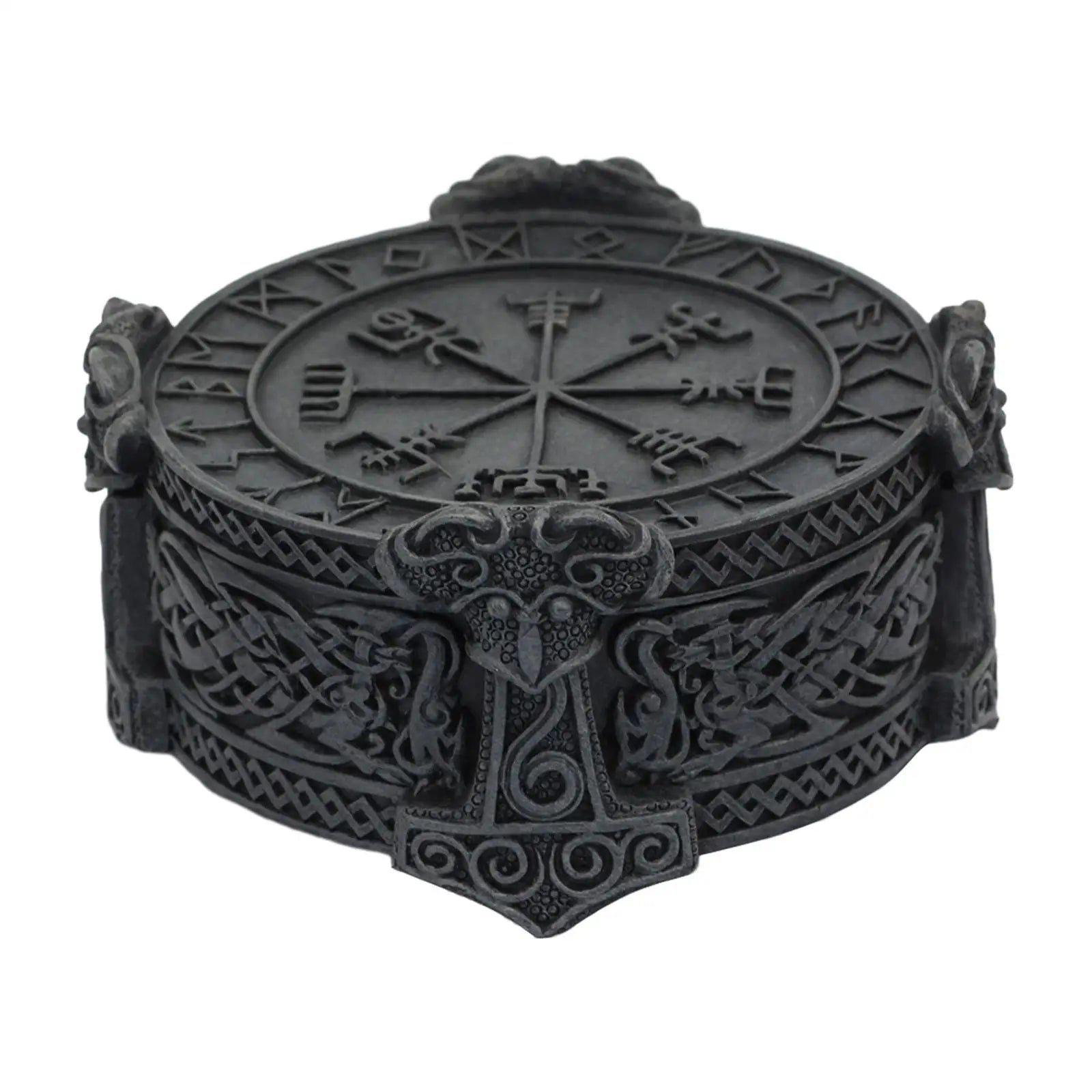 [Handmade Crafts]: It is intricately designed with Runic Compass Knotwork Hammer Trinket Box, delicate, vivid and realistic, and last for long time.